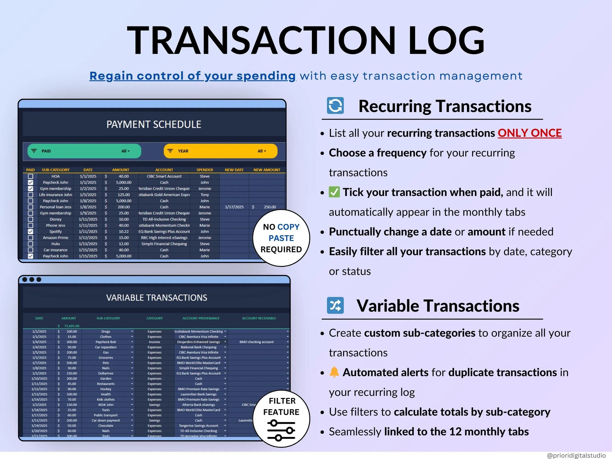 Our Ultimate Budget Spreadsheet is the perfect tool for individuals aiming to effortlessly track their spending. Customize categories, manage transactions in any currency, and easily monitor your financial progress with automated graphs.