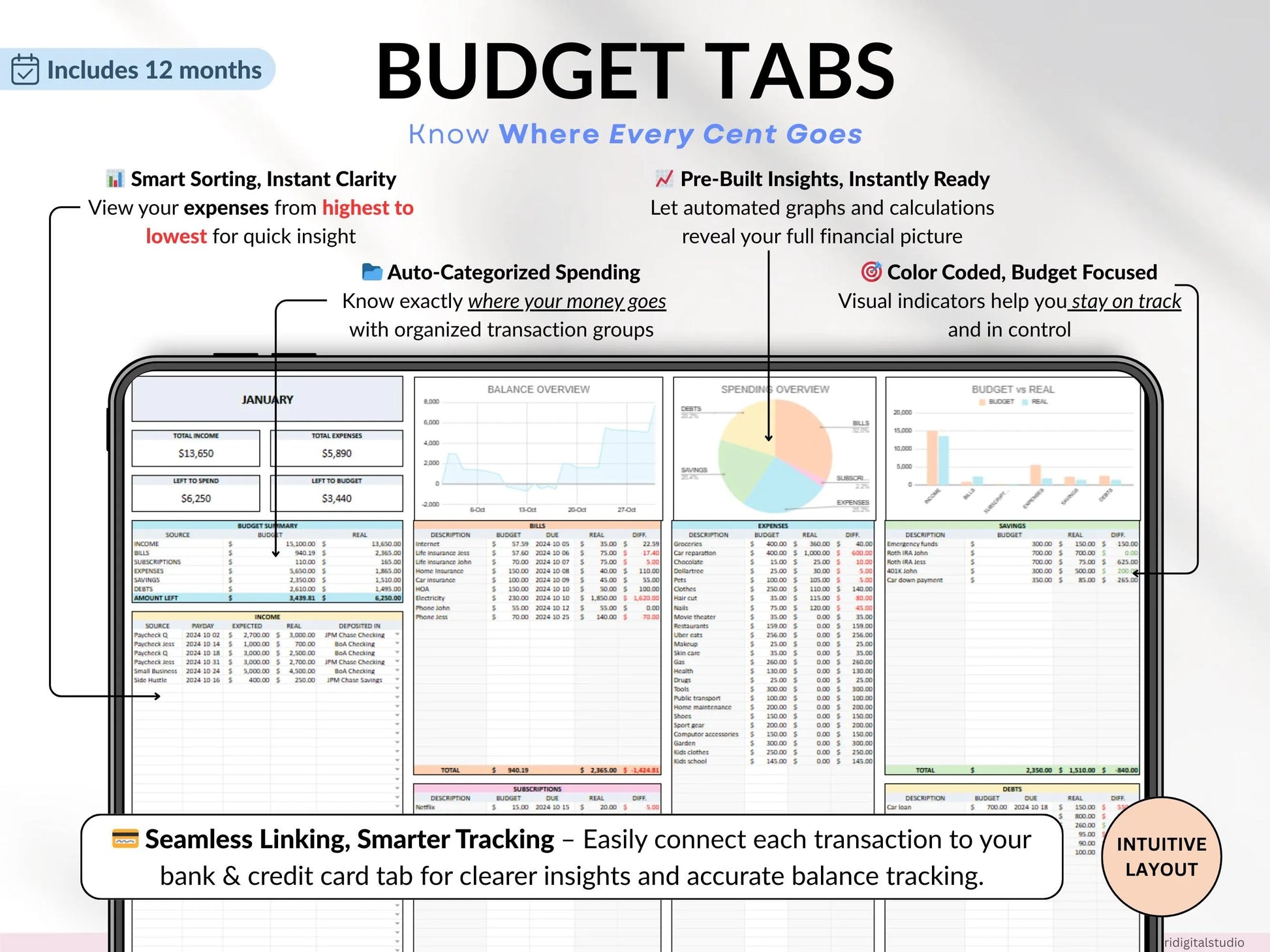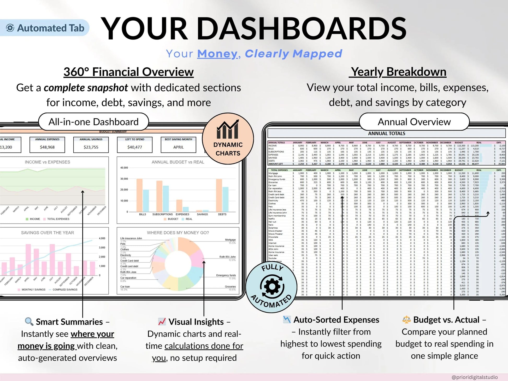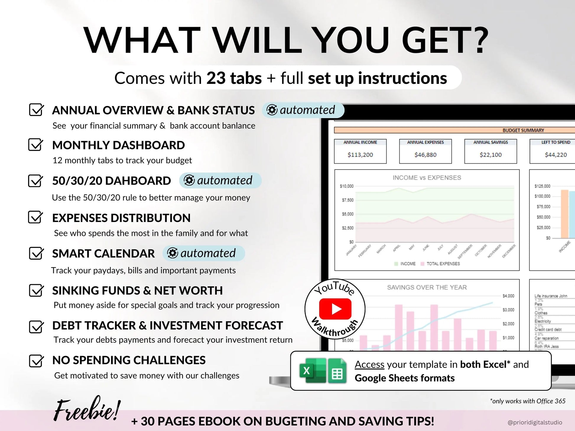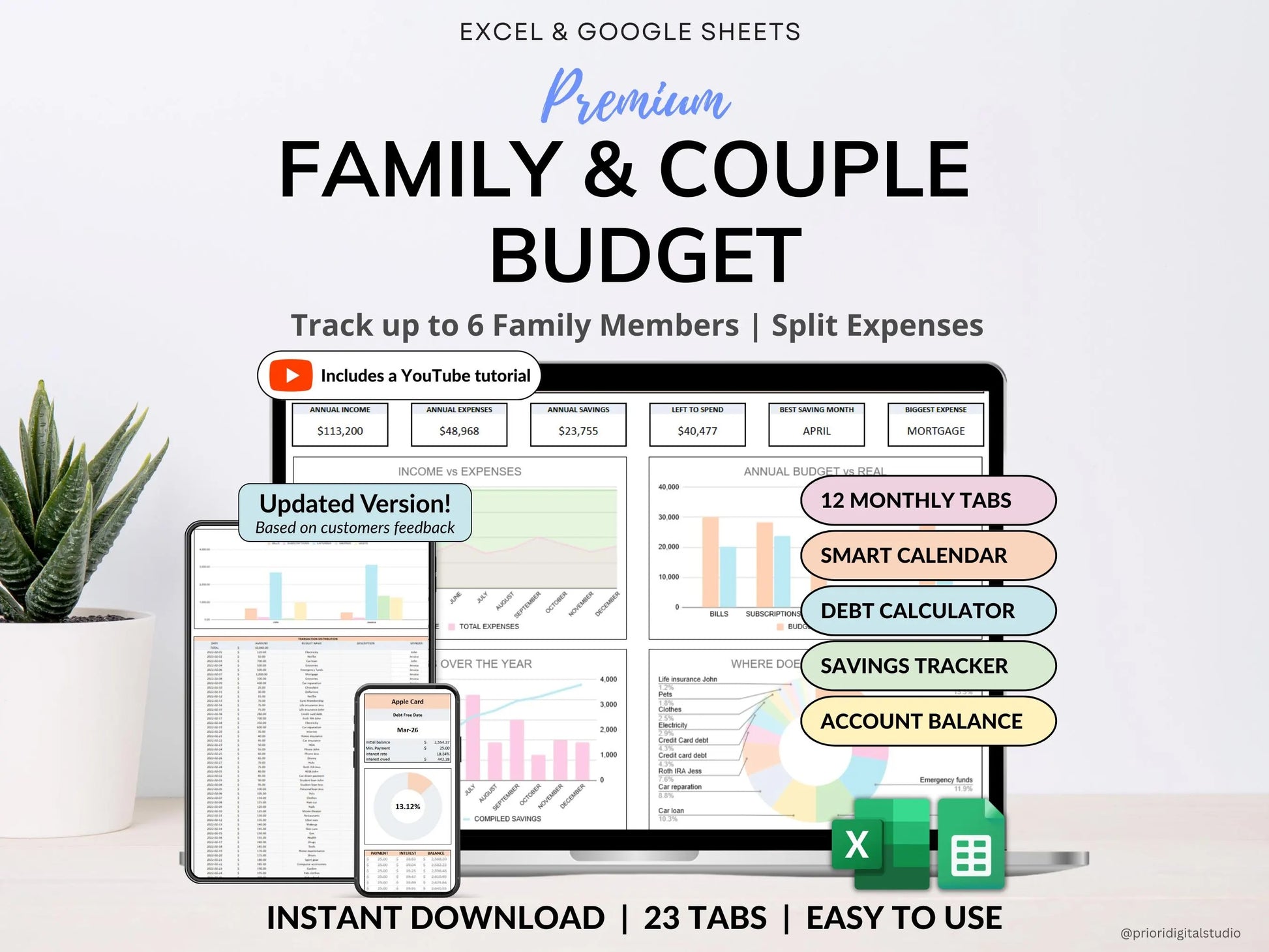 Our Premium Family & Couple Annual Budget for Google Sheets and Excel is perfect for you, if you are trying to track your expenses, reduce your debts and overall control of your finances in a better and easier way!