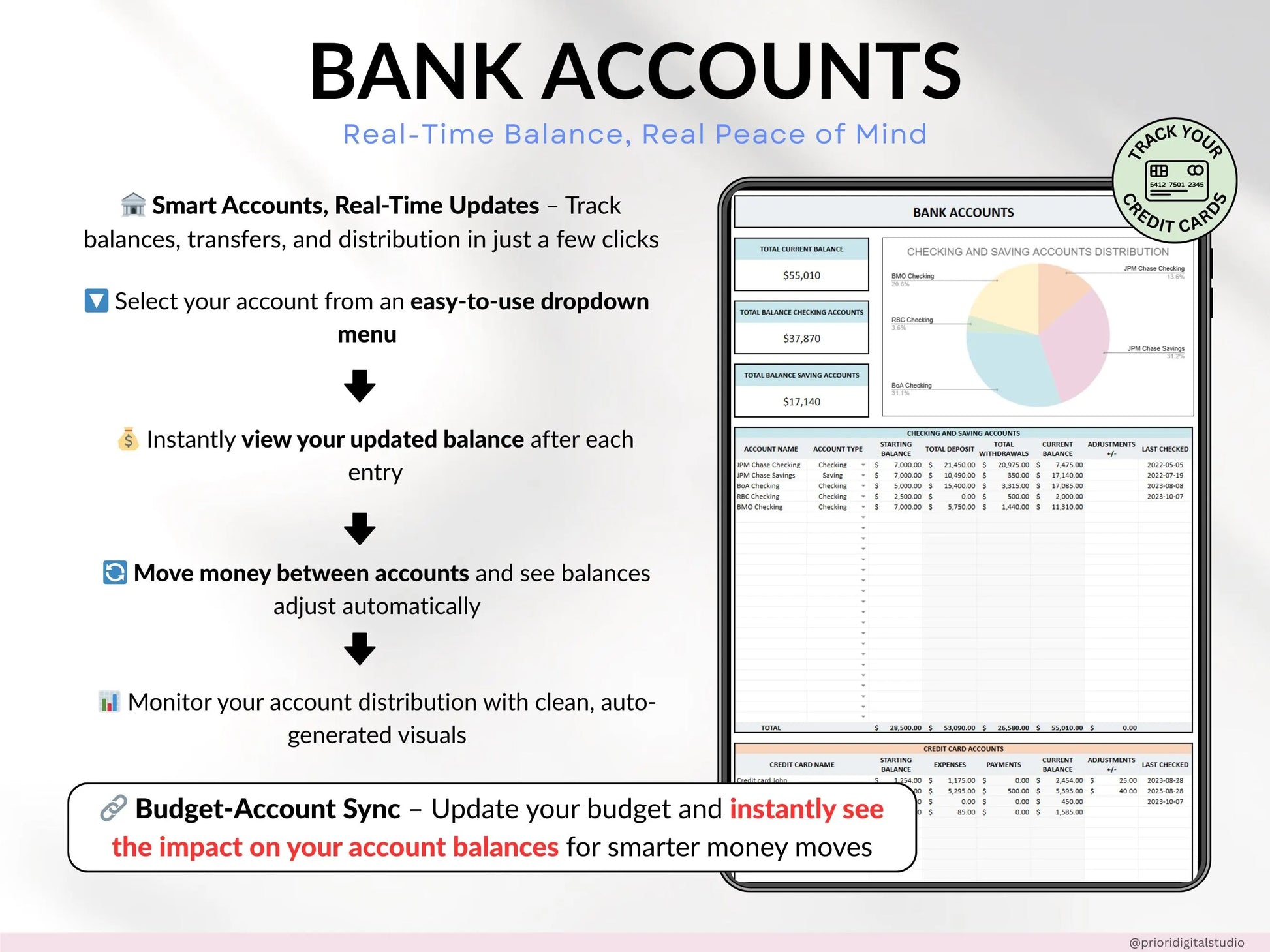 Bank Account Balance Tracker - Up to 25 checking and savings account