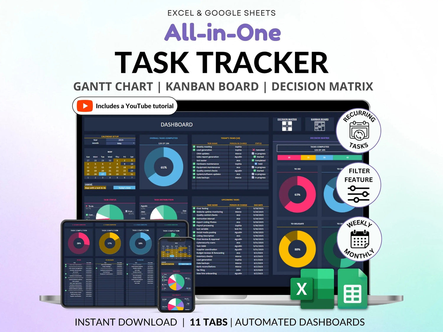 Task Tracker Excel Spreadsheet To Do List Google Sheets Task Priority Tracker Eisenhower Matrix Kanban Board
